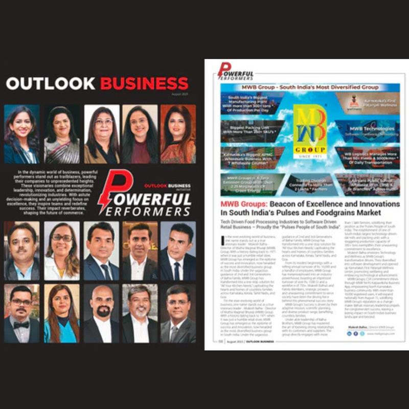 India's Leading Business Magazine, "Outlook Business, covers MWB Groups Hubli as "India's Powerful Performers"